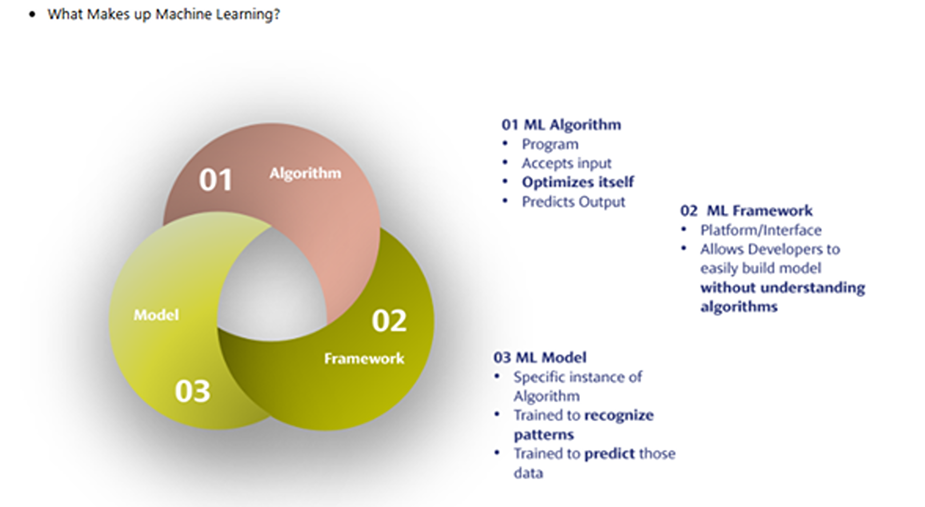 Un algoritmo de aprendizaje automático es un programa que recibe y analiza datos de entrada y luego se optimiza a sí mismo con el tiempo para predecir valores de salida en un rango aceptable. Por ejemplo, en función del salario y el saldo bancario, un cliente normal puede convertirse en un cliente de alto valor para un banco. Un marco de aprendizaje automático es una plataforma, interfaz, biblioteca o herramienta que permite a los desarrolladores crear modelos de aprendizaje automático de manera más fácil y rápida, sin entrar en el meollo de los algoritmos subyacentes.