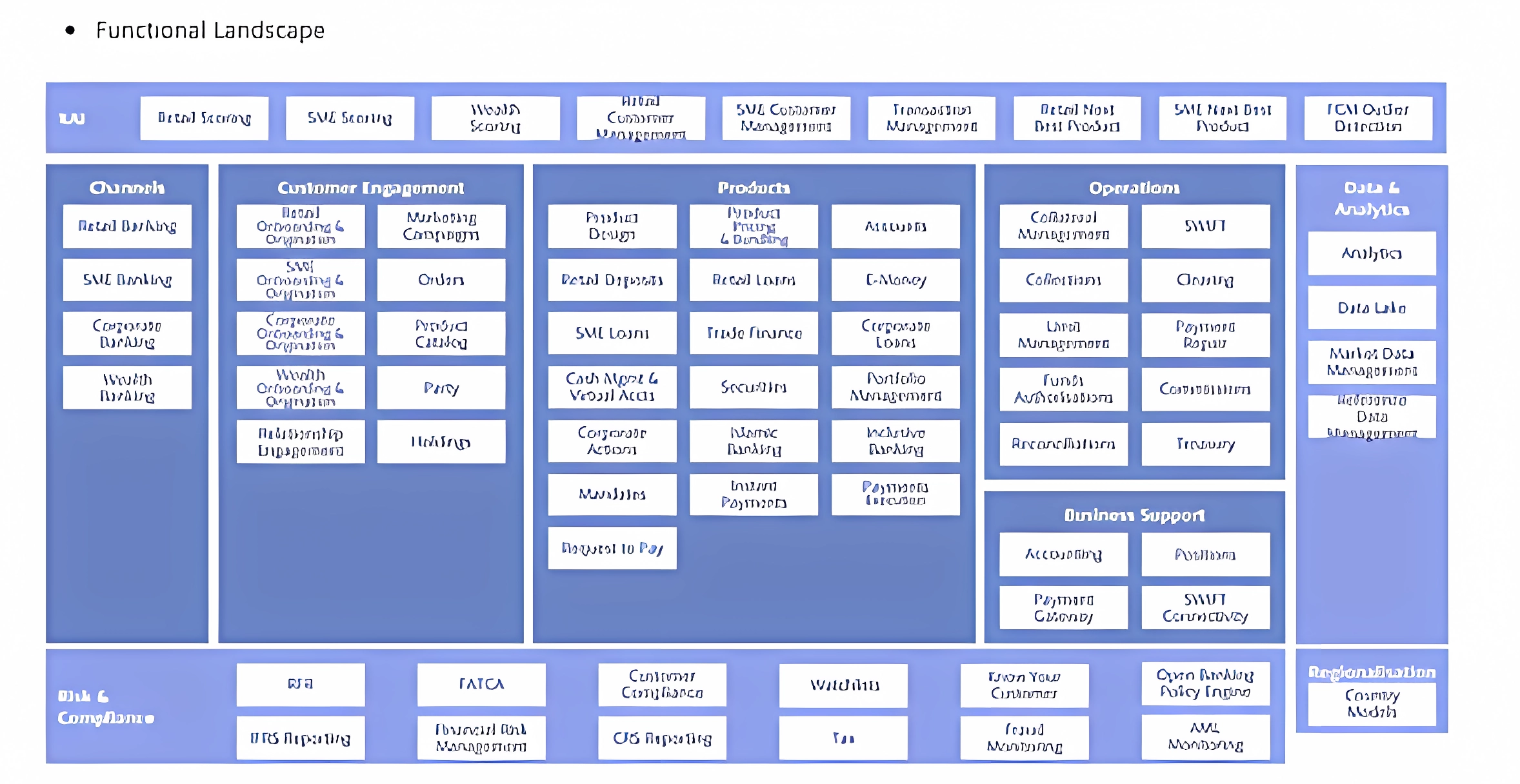 Las operaciones contienen aquellas áreas que son necesarias para un banco como capacidades bancarias fundamentales, pero que no son en sí mismas productos que se venden a los clientes.