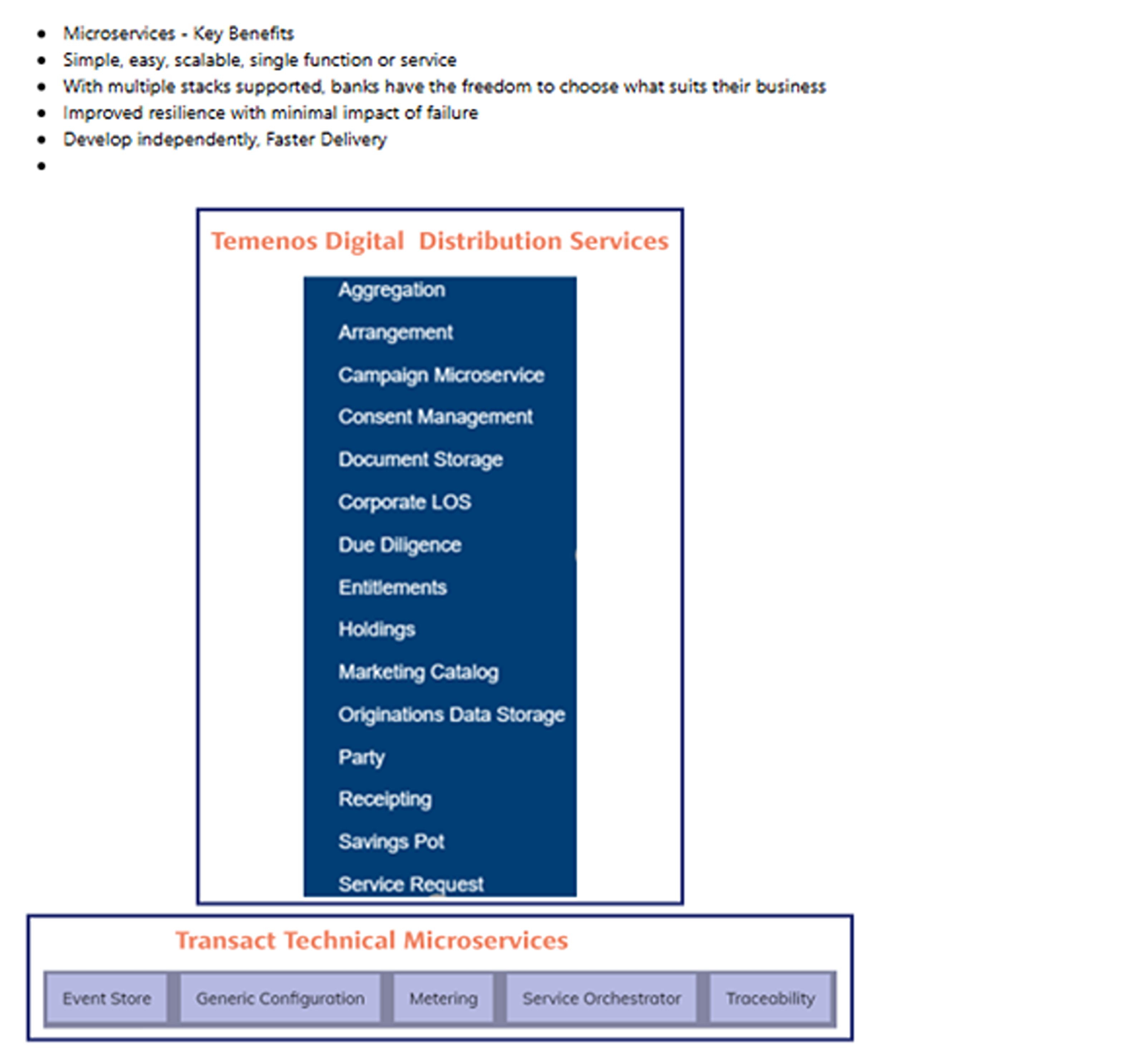 Diferentes equipos pueden desarrollar componentes de forma independiente y simultánea, lo que permite una entrega más rápida y una mejor calidad. En la pantalla, puede ver algunos de los servicios de distribución de Infinity y los microservicios técnicos de transacciones que tenemos hoy en día.