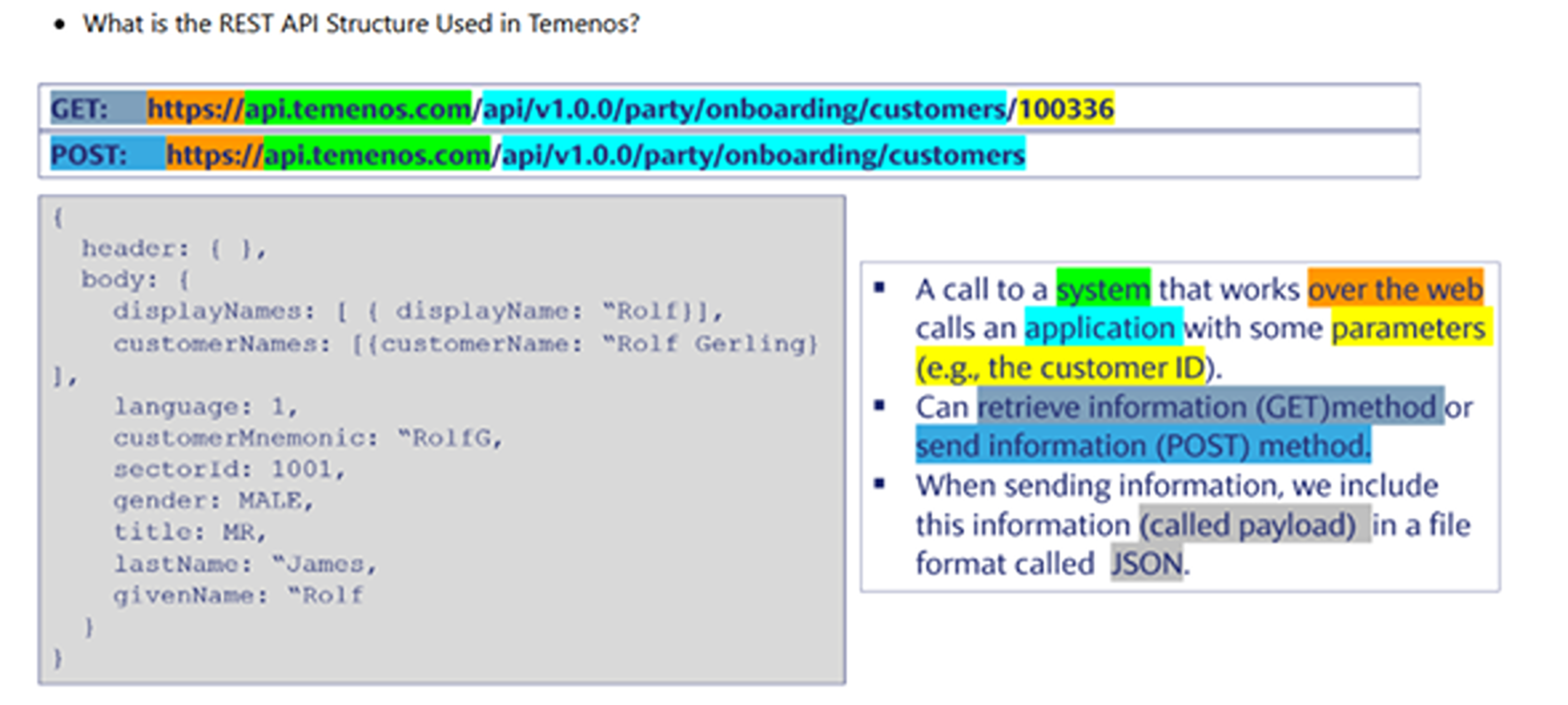 Parámetro: ID de cliente, digamos 100336. Carga útil: respuesta de la API: está en formato JSON.
