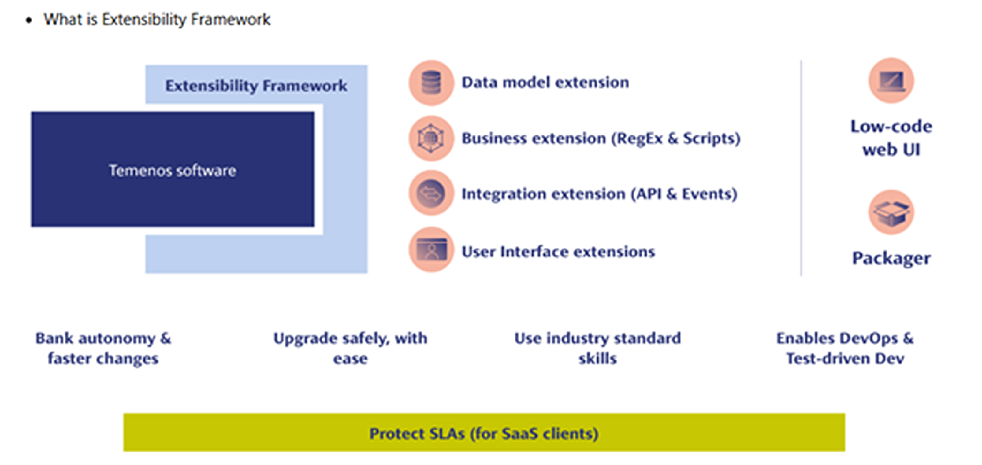 Temenos Tooling complementa este marco al ofrecer herramientas que respaldan DevOps, integración continua y extensibilidad. Esta arquitectura permite a las organizaciones manejar flujos de trabajo complejos, mejorar el procesamiento de datos y mantener aplicaciones bancarias seguras, escalables y extensibles.