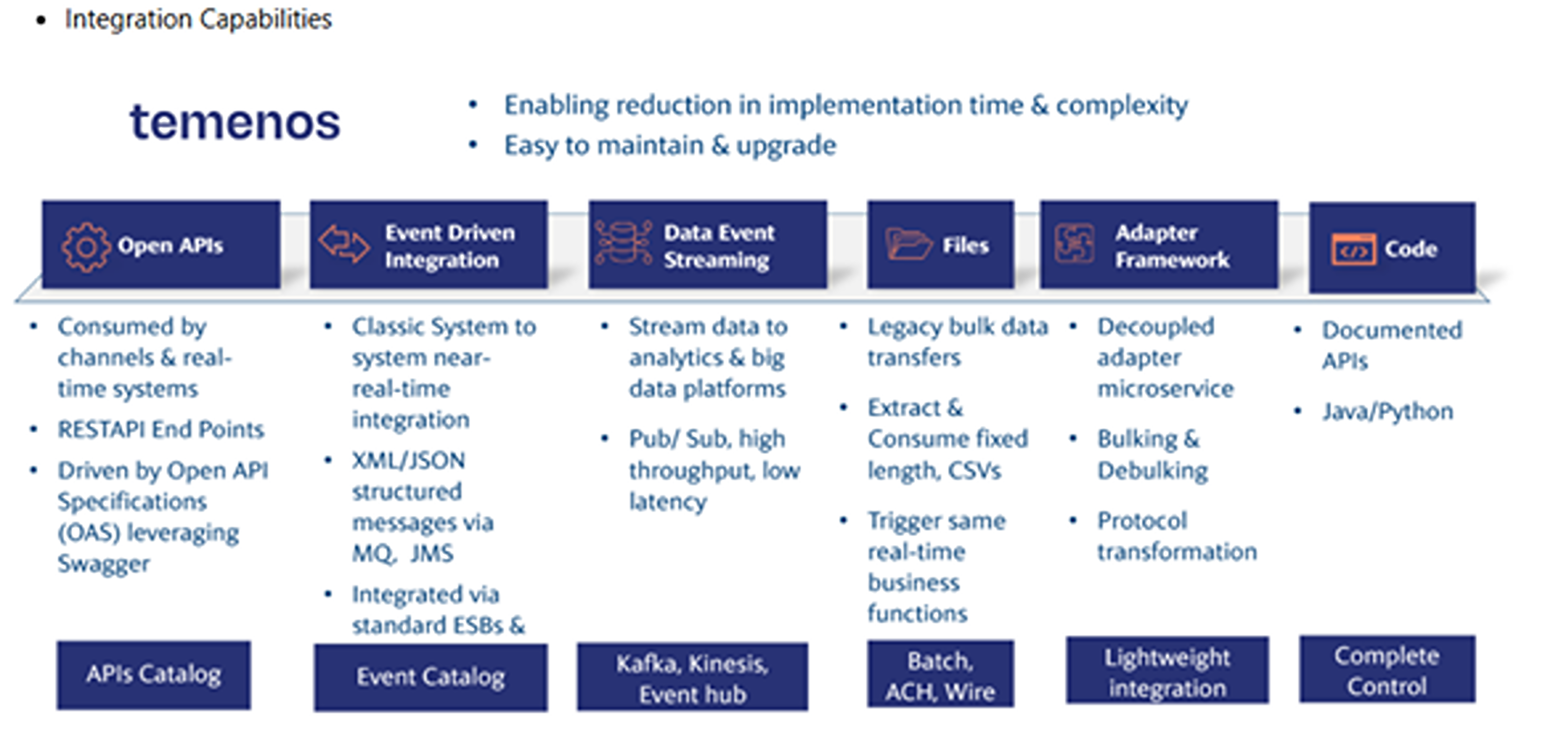 El "Marco de Integración de Temenos" está diseñado para optimizar la conectividad del sistema al reducir el tiempo de implementación y la complejidad, al tiempo que garantiza la facilidad de mantenimiento y actualizaciones.